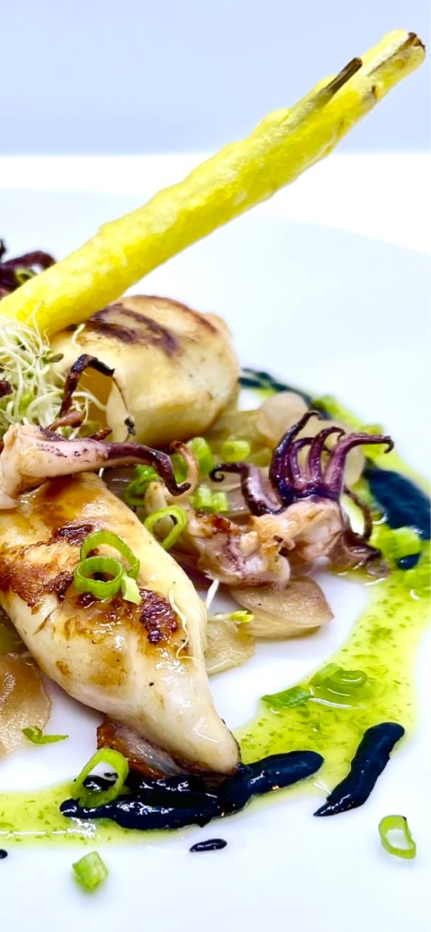 La mente del chef se convierte en un lienzo, y los ingredientes en pinceles con los que pintar obras de arte gastronómicas. Los platos se transforman en pequeñas joyas de innovación: desde las Croquetas de Chipirones con Alioli de tinta de calamar hasta las hamburguesitas de rabo de toro con ketchup de pimientos del piquillo .